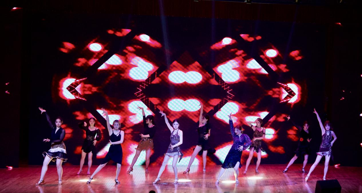 演出在活力四射的开场舞《lalalang》中拉开帷幕,舞者们踏着轻快的节奏,用灵动的舞姿传递着青春的朝气与活力,瞬间点燃全场气氛。民舞《花想容》以古典舞为载体,舞者们衣袂飘飘,将 “云想衣裳花想容” 的绝美意境娓娓道来,举手投足间尽显东方韵味;现代舞《雪崩》极具张力,舞者们通过极具爆发力的肢体动作,展现出在困境中挣扎与突破的力量感,震撼人心;热情奔放的拉丁舞,以强烈的节奏和奔放的舞姿,诠释着青春的热烈与张扬;民舞《清风徐来》,舞者们身姿轻盈,舞步舒缓,仿若微风拂过,带来丝丝惬意与美好;《再次重逢的世界》则以灵动的舞步和欢快的韵律,表达着对美好未来的憧憬与期待。