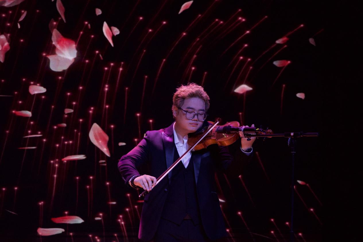 民乐合奏《寄明月》率先登场,丝竹管弦交织,似将朦胧月色与缱绻情思融入旋律,带领观众踏入诗意的月夜幻境。古筝独奏《定风波》中,演奏者指尖起落间,古朴的琴音裹挟着旷达豪情,演绎出 “一蓑烟雨任平生” 的洒脱。竹笛曲《姑苏行》婉转悠扬,笛声如潺潺流水,勾勒出苏州园林的典雅与江南水乡的温婉。扬琴独奏《红河的春天》旋律明快热烈,清脆的扬琴声仿佛奏响了红河两岸万物复苏的生机。古筝重奏《采薇》以灵动多变的节奏,重现了《诗经》中戍卒的思乡之情,琴音如诉。二胡合奏《战马奔腾》气势雄浑,弓弦震颤间,万马嘶鸣、驰骋疆场的壮阔画面跃然眼前。小提琴重奏《一步之遥》与《笼》风格迥异,前者探戈节奏热情奔放,后者旋律细腻深沉,展现出弦乐的多样魅力。钢琴独奏《华尔斯坦奏鸣曲》音符如珠落玉盘,激昂与舒缓交织,尽显古典音乐的磅礴气势。西乐重奏《加勒比海盗》以宏大的旋律,营造出惊心动魄的冒险氛围,将现场气氛推向高潮。
