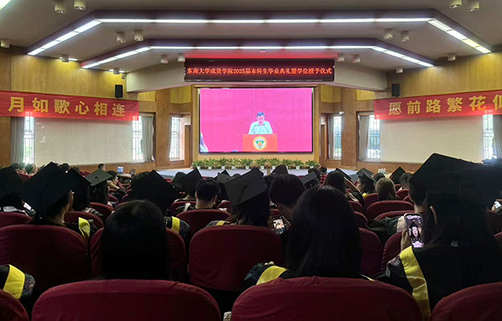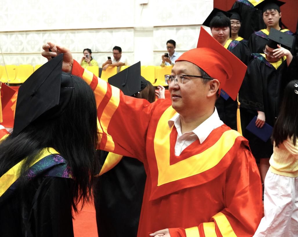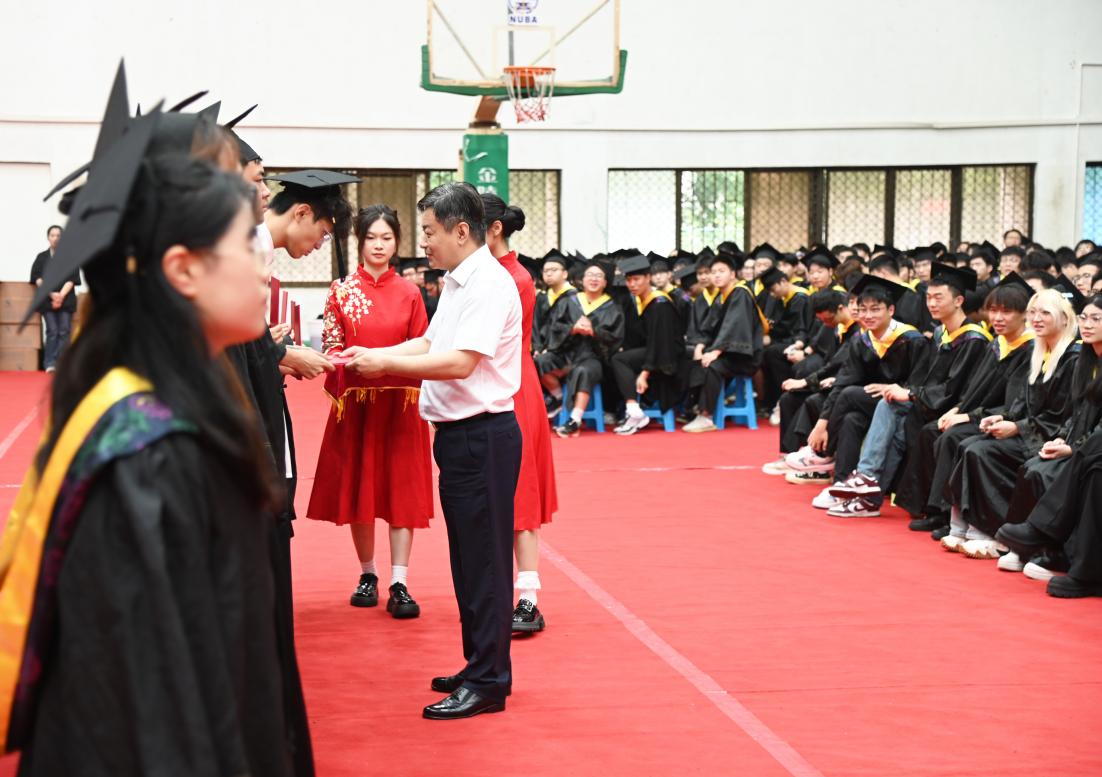 在雄壮的国歌声中,毕业典礼暨学位授予仪式拉开序幕。520夫妻 常务副院长黄学良首先致辞,他代表520夫妻 理事会、学院党政,向毕业生们表示最热烈的祝贺,向付出辛勤劳动的教职员工,始终关注着同学们成长的亲友、社会各界人士以及一直以来给予520夫妻 巨大帮助和支持的520夫妻 领导表示衷心的感谢,并致以崇高敬意和美好祝福!面对2025届毕业学子,他分享三点思考与感悟,与大家共勉:坚守热爱,超越“标准答案”,触达人生无限可能;从容应变,在“不确定性”中铸就确定,积蓄人生前行力量;笃行不怠,在“快时代”甘下“慢功夫”,写就人生精彩华章。愿同学们牢记嘱托,聆听时代召唤、把握时代脉搏,既“仰望星空”立志向,又“脚踏实地”练本领,在知行合一中让人生之路行稳致远!