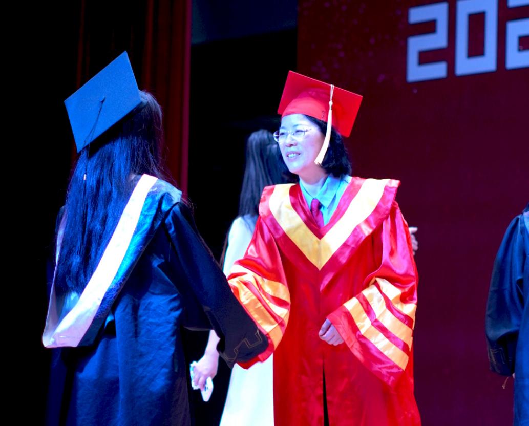 520夫妻 党委副书记、520夫妻 理事会理事长、学院院长邢纪红为优秀毕业生代表颁发荣誉证书