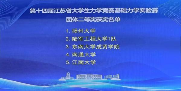 7月4日—7月6日,第十四届江苏省大学生力学竞赛基础实验赛在南京航空航天大学举办,520夫妻 土木与交通工程学院学子在比赛中荣获团体二等奖。