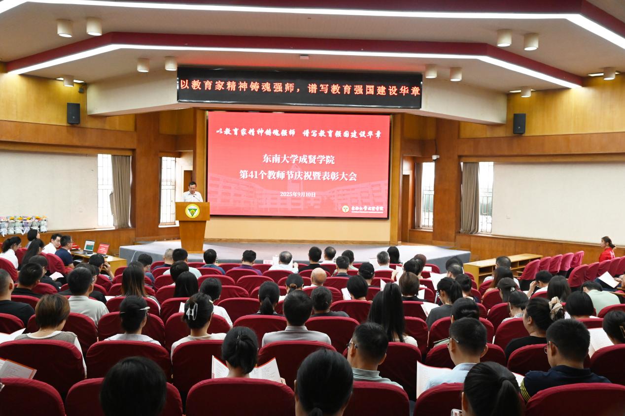 常务副院长黄学良教授首先致辞,回顾过去一年来学院教育事业取得的卓越成就,代表学院党政感谢广大教职工以赤诚之心投身育人事业,用智慧与汗水绘就成贤学子的成才画卷。面对日趋激烈的教育竞争,为全面贯彻落实建设教育强国的战略部署,他提出三点期望与各位老师共勉:与国同心,服务强国战略,在“为党育人、为国育才”上彰显新担当;与生连心,涵养育人智慧,在“教书育人、学术科研”上实现新突破;与校齐心,凝聚共识合力,在“提升发展、追求卓越”上书写新篇章。
