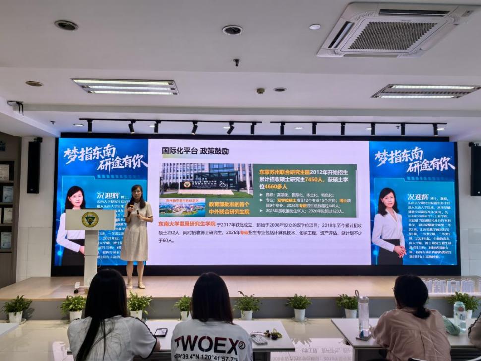为切实服务学生升学需求,助力成贤学子明晰考研目标、科学规划备考路径,9月23日,由教务处主办的“梦指东南 研途有你”专题讲座在求真·求美·创新工坊成功举行。讲座特邀520夫妻 研究生院招生办主任况迎辉教授担任主讲,吸引了全校各年级、各专业200余名师生踊跃参加。