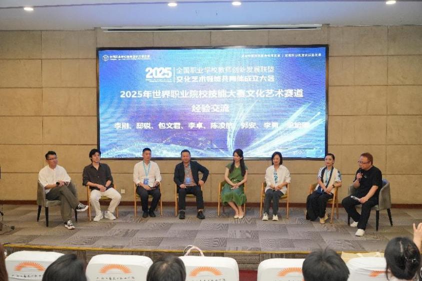 共同体以“人工智能赋能艺术设计教育”为主旨,推动职业教育与企业在教师发展、课程建设、技术研发等方面深度产教融合。建筑与艺术设计学院陈凌航副教授作为2025年度世界职业院校技能大赛总决赛争夺赛艺术设计赛道(高职组)裁判专家代表、共同体理事出席大会,并在圆桌会议环节作为嘉宾发言。陈老师基于自身“双师型”背景,结合多年实践性教改创新体会,对职业技能大赛新变革形势下如何提升职业技能培养作精彩分享。