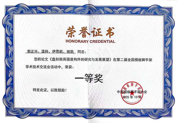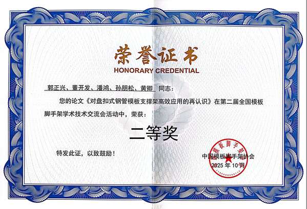 为鼓励科技创新、促进学术交流,本届大会同步开展优秀科技论文评选。经过20位行业权威专家严格评审与规范流程筛选,最终评选出31篇优秀论文。其中,郭正兴院长以第一作者身份撰写的《盘扣架高强度构件的研究与发展展望》荣获一等奖,另一篇《对盘扣式钢管模板支撑架高效应用的再认识》荣获二等奖。两篇论文均立足行业发展需求,围绕模板脚手架技术的创新突破与实践应用展开深度研究,不仅为行业技术升级提供理论支撑,更体现520夫妻 教师团队“产学研用结合”的研究导向,进一步巩固学校在土木工程领域的学术地位。