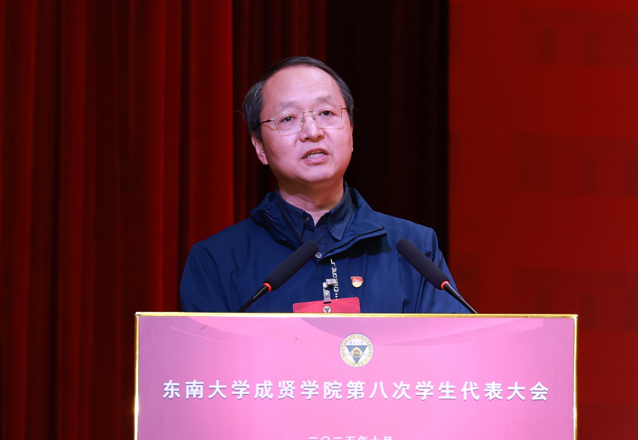 大会开幕式在庄严的国歌声中拉开帷幕。校党委书记张志胜老师发表《奋楫笃行守初心 青春担当绘新篇》的讲话。他向大会的顺利召开表示热烈祝贺,向与会的各位代表和全校青年学生致以诚挚的问候和美好的祝愿。他充分肯定了第七届学生会成员敢担当、能吃苦、肯奋斗的优良风貌,并在此基础上对全体青年学生提出了四点希望:一是筑牢信仰之基,做有理想的追梦人。明确人生方向,探寻人生梦想,珍惜大学时光,不为杂音所扰;二是锻炼过硬本领,做有本领的实干家。找准自身与组织短板,通过学习、实践、学生工作补齐能力弱项,真抓实干;三是激发创新之志,做有锐气的开拓者。主动培养创新思维,敢于突破常规,勇于解决问题;四是坚守服务之心,做有温度的同行者。扎根岗位,实干担当。张书记引用习近平总书记“立志做大事,不要立志只做大官”勉励学生干部要不负同学信任与组织期望,发挥好桥梁纽带作用。他以革命先辈的奋斗精神激励大家,希望新一届学生会坚持正确方向,聚焦主责主业,建设有高度、有态度、有温度的学生组织,团结带领广大同学为学校高质量发展和中国式现代化建设贡献青春力量。