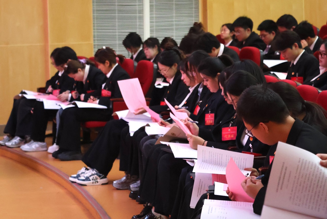 正式会议阶段,与会代表先后审议并通过了《第七次学生代表大会常任代表会议工作报告》《第二十届学生会组织工作报告》《第八次学生代表大会提案工作报告(草案)》;大会主席团向大会作《扛起青春使命,矢志奋斗前行,带领广大同学为建设全国一流应用型大学砥砺前行》工作报告,总结上一阶段学生会工作,并对今后工作提出建议;大会根据《第八次学生代表大会选举办法》等文件规定,秉持公平公正公开原则,采用差额选举的方式,选举产生了新一届常任代表会议成员、学生会主席团成员。会议在全体代表激昂的《国际歌》歌声中闭幕。