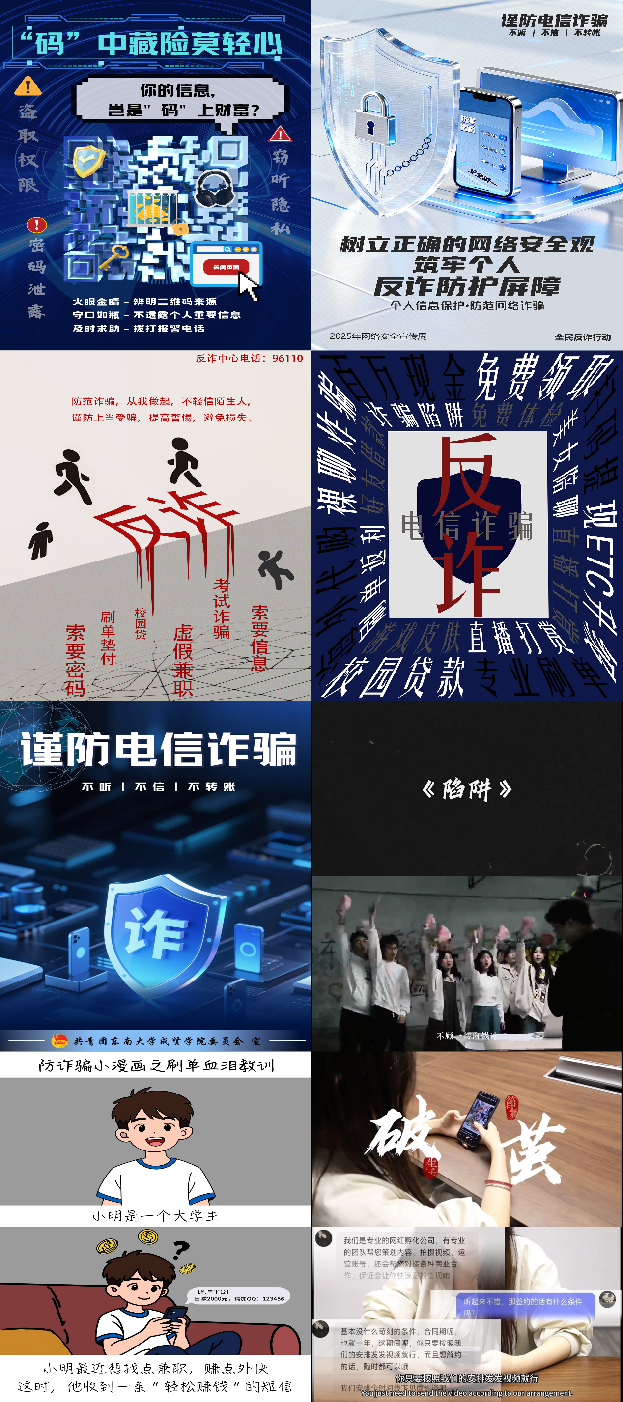 校团委同步发起“网络安全・反诈有我”作品征集活动,鼓励学生通过漫画、短视频、手抄报等形式创作反诈宣传作品,以学生视角传递反诈声音,增强宣传感染力。