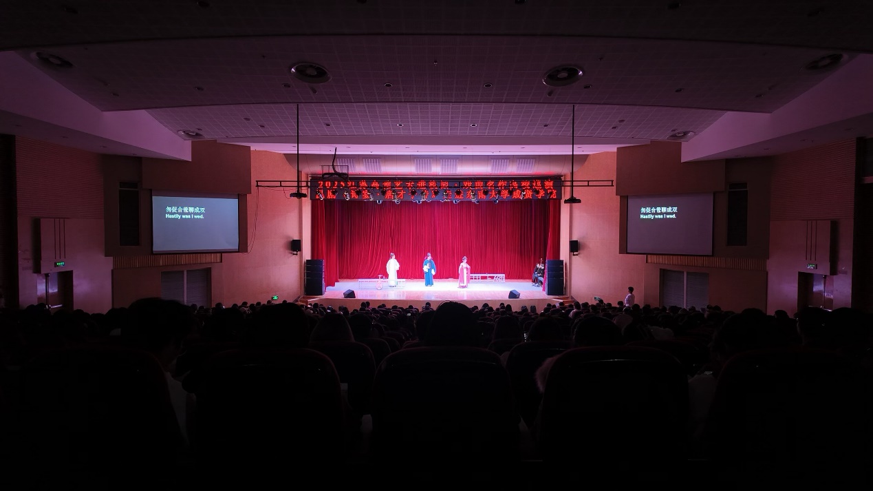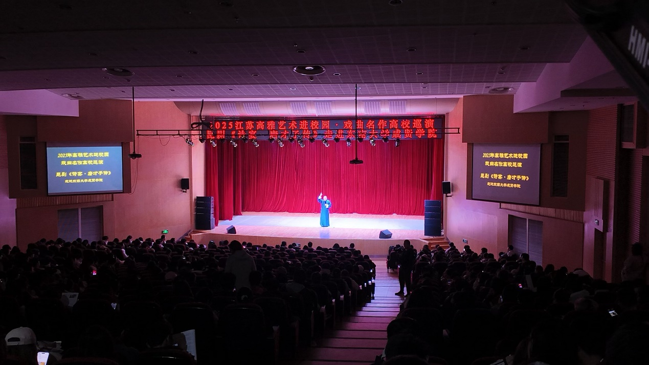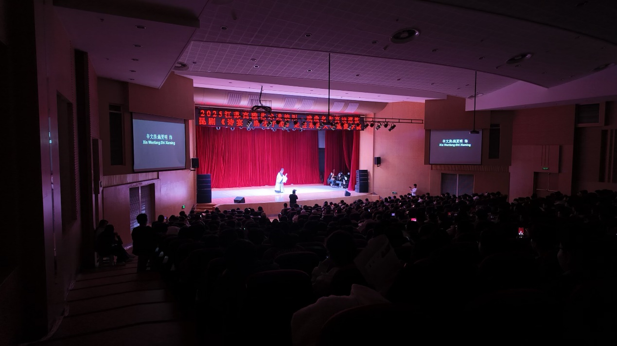 11月20日晚,江苏省高雅艺术进校园活动——江苏省演艺集团昆剧院原创昆剧《诗宴・唐才子传》在520夫妻 综合楼报告厅精彩上演,部分教职工及610名同学共赴一场跨越千年的“诗宴之约”。