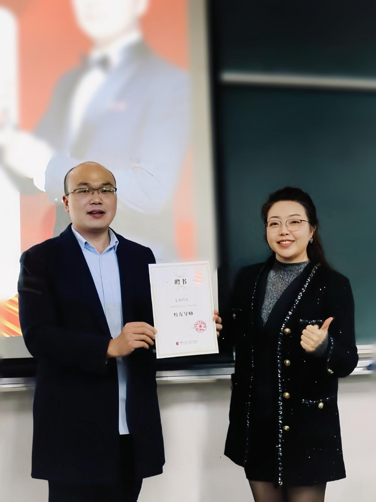 会议首先举办聘任仪式。建筑与艺术设计学院聘请张策校友担任“校友导师”。江晶老师为张策校友颁发了聘书。这份聘书不仅是一份荣誉,更是一座连接母校与校友、融合学业与产业的桥梁。