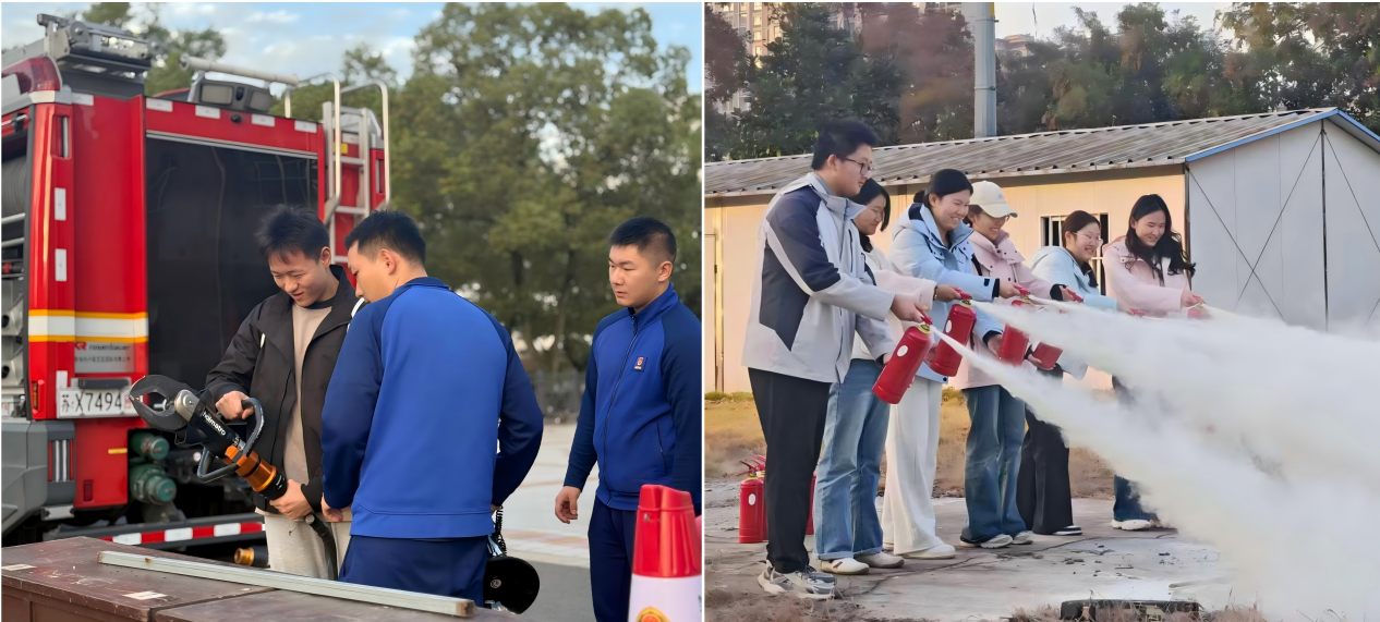 11月10日,在成园广场设立的消防全景体验区成为活动亮点。南京消防高新大队队员现场指导师生操作救援破拆、防护穿戴、灭火扑救三类装备,让抽象的安全知识转化为可触可感的“实战”技能。通过实景模拟与亲手操作的体验,增强了师生的代入感,更好地掌握了相关设备的使用方法,提高了处置初期火情和应急自救互救的能力。针对身边常用消防器材的使用,在11月24日的消防演练中进行了专场实操。学生们在活动反馈中提到:“亲手操作后印象深刻,更好地理解了操作要领。”