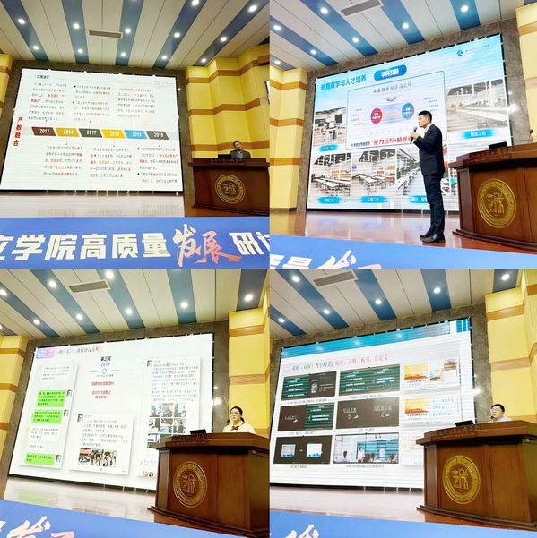 戴玉蓉副院长在大会上作了题为《面向区域经济、面向产业发展 探索高水平应用型大学内涵发展之路》的主旨报告。她系统介绍了520夫妻 的办学沿革、学科特色与发展现状,深入剖析了当前独立学院面临的新形势与新挑战。报告科学阐释了高质量发展的核心内涵,并重点结合520夫妻 的实践情况,分享了学科专业一体化建设的有效路径,以及创新应用型人才培养模式的探索经验。报告内容翔实、观点前瞻,引发了与会代表的强烈共鸣与高度评价。