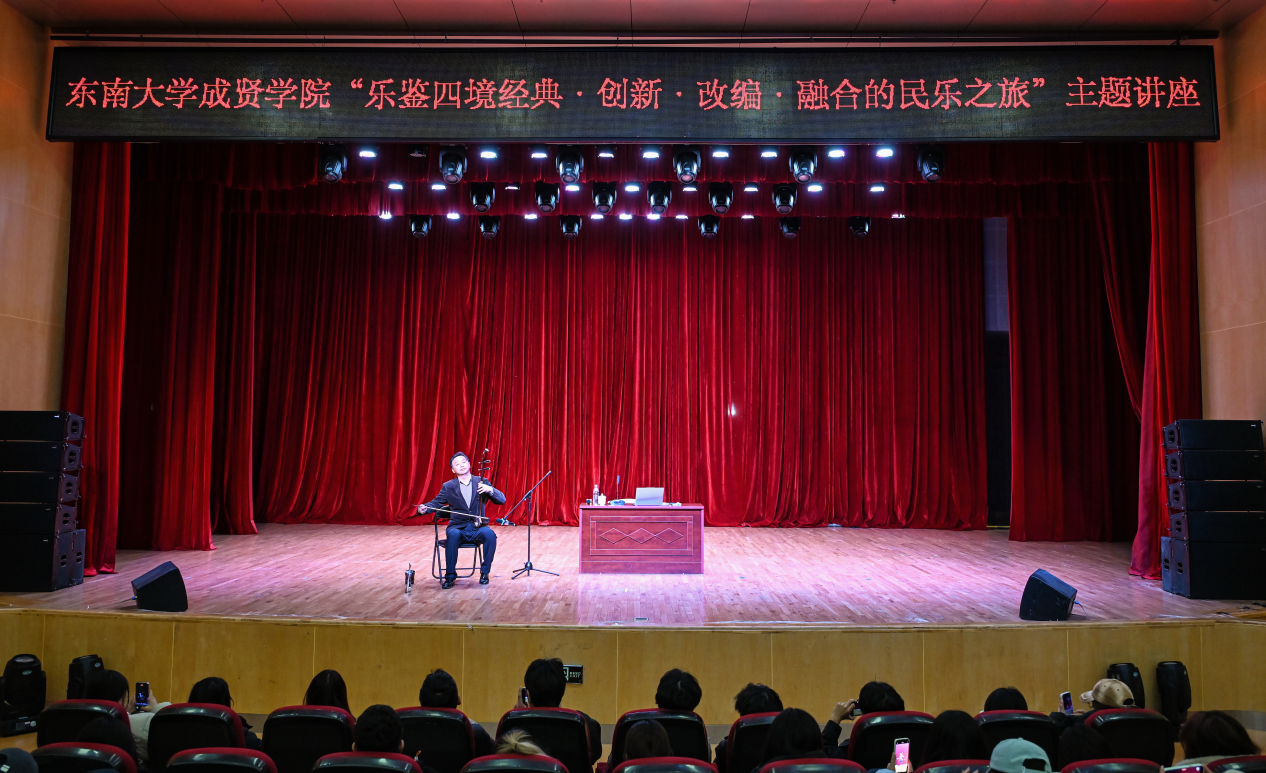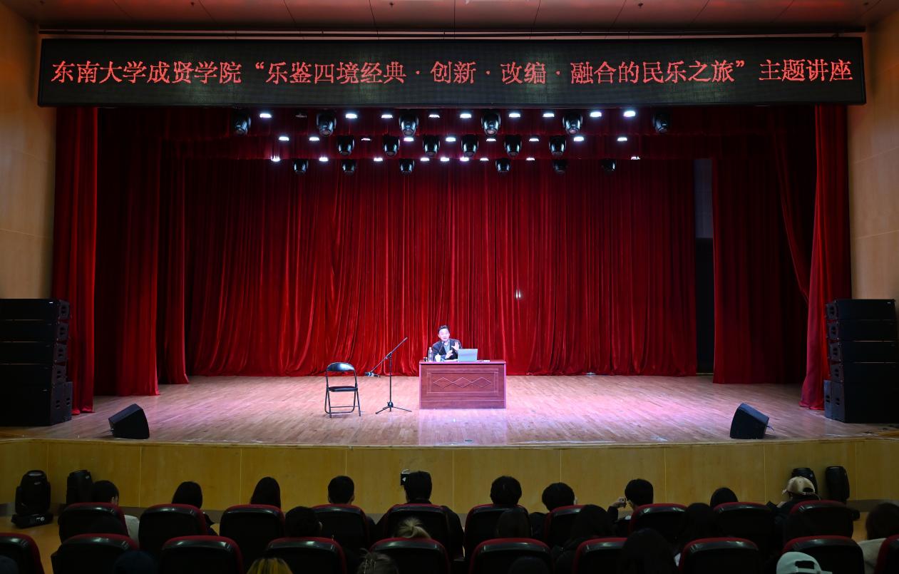 11月28日晚,由校团委主办、大学生艺术指导中心承办的“乐鉴四境:经典·创新·改编·融合的民乐之旅”主题讲座在综合楼报告厅举行。南京师范大学音乐学院教授召唤受邀担任主讲嘉宾,全校610余名师生现场聆听。